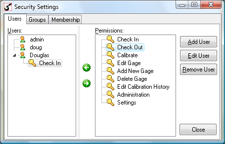 Membership - The membership list allows you to add and remove users to groups. The users will then have the permissions that are set for the group.