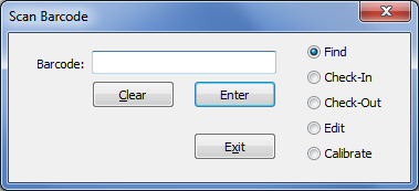 The Scan Barcode window will allow you to input from a barcode reader and automatically perform operations.