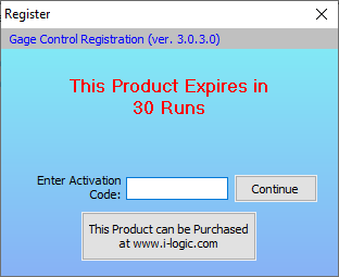 When you purchase Gage Control over the Internet, you will receive a Registration Code or Activation key that will turn your trial version of Gage Control into a permanently registered version.