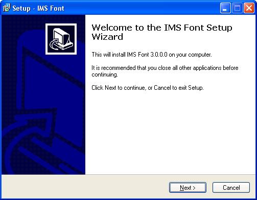 For trial users the Standard font is installed automatically when you install the IMS Wizard program.