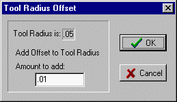 Dialog box asks for value to add to the standard radius size for this tool .
