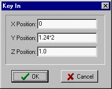 Open the Key In dialog box from the pick buttons. Use this when you want to enter coordinates from the keyboard.