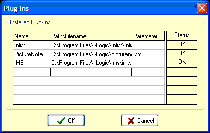 You can put external executable programs onto the Inplot main menu by entering the name and filename into the list. 'Name' is the name that shows up on the menu. 'Path\Filename' is file to execute when the menu item is clicked.