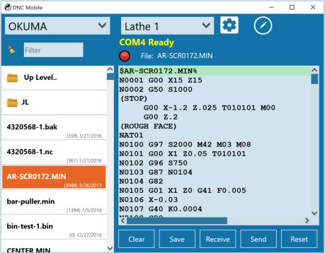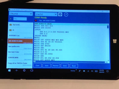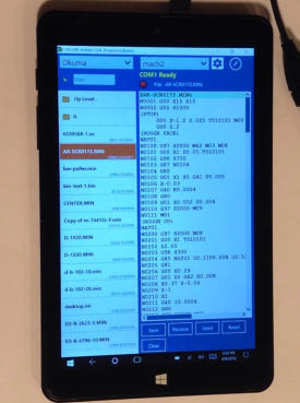 It has most of the functions and settings of the desktop DNC Server. It doesn’t use the Multi-Serve or Remote options because those wouldn’t make sense on a device that is meant to be taken to each machine and plugged in. But the Mazatrol Option can be used with it. Settings help can be found in the desktop help file.You can either have your NC files stored on the tablet or the tablet can use wi-fi to access files on other PCs through the local network.