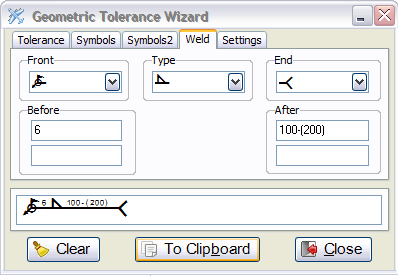 The Before and After boxes allow the writing of letters and numbers on the Reference Line before and after the weld symbol. The two boxes on each side allow text to be above or below the Reference Line.