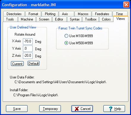 When using a Fanuc Twin-Turret configuration, the upper and lower turrets are synchronized by finding the same M-Codes in both programs. By default, Inplot uses M500 to M999 as the Sync Codes. On older machines, you may need to start at M100. Or you can set some other number in the machine INI file with FanucSyncStart=