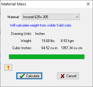 The Lathe Material weight function will calculate the weight of the part using the Solids feature.