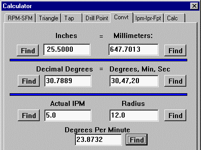 Enter a value into the box on one side and press the Find button on the other side.