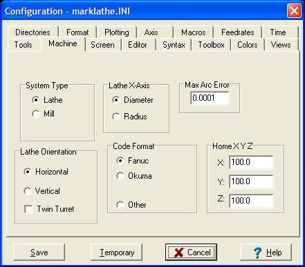 When System Type is set for Lathe, choose Horizontal for a horizontal style lathe, or Vertical for a vertical style lathe.